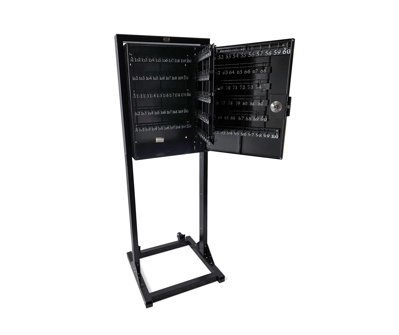 The 200 Keybox with Keypad and Stand is a versatile unit that has pre-drilled holes so that it can be easily mounted on a wall or on our sturdy key box stand (Hardware not included). This unit has a staggered 200 key, steel hook system that keeps keys spaced apart for quick access. It also features zinc undercoating for improved durability and a scratch-resistant textured powder coat finish. The 200 Keybox with Keypad is great for small to medium sized valet operations. We can expedite shipping on this unit.