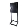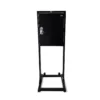 The stand is made out of the same heavy duty powder coated steel, has a handle at the top of the stand and two casters on the bottom to allow ease of moving the unit to storage or your event’s location.