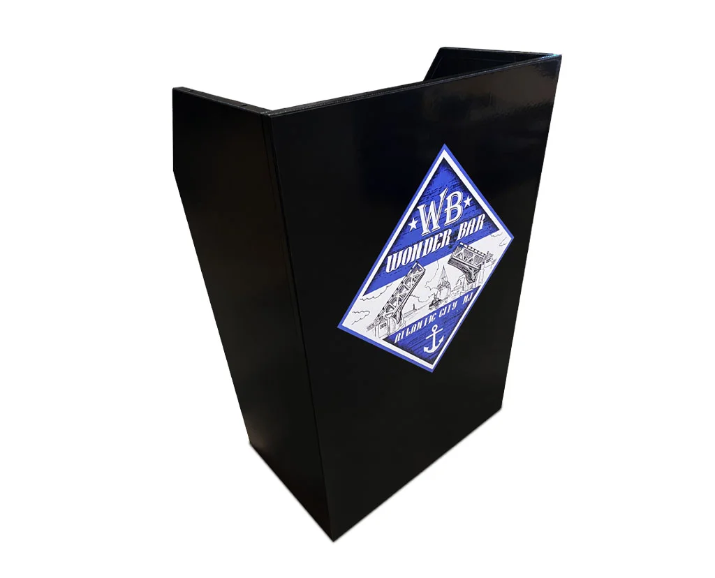 This is a great option for those who want a specific background color but don’t want to permanently affect the podium itself. Our magnets cover the full face of whatever side they are applied to and are fully removeable if you decide to use the podium for other uses or companies.