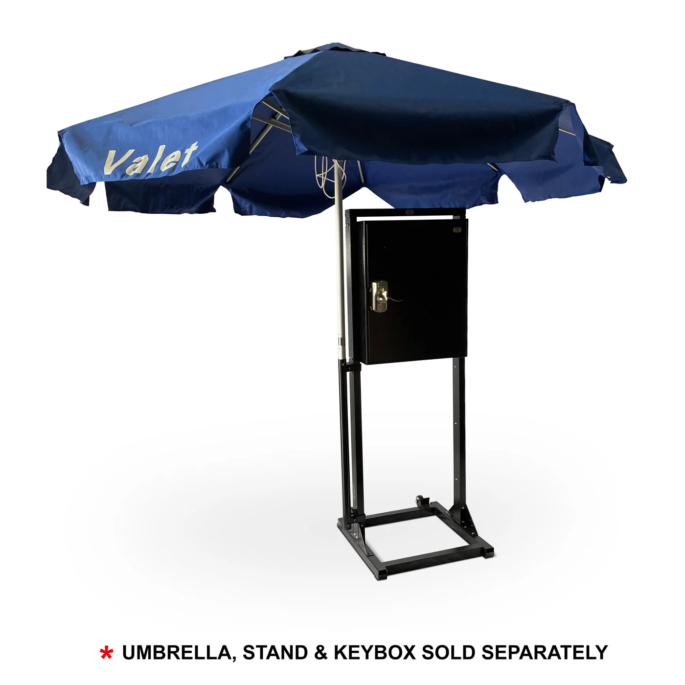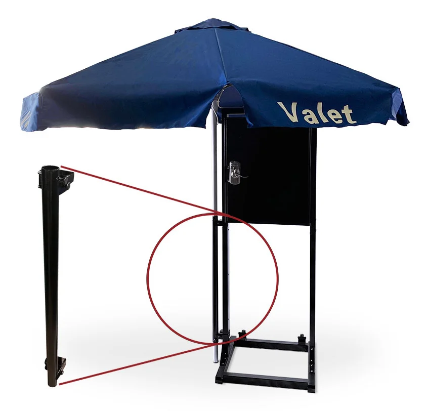 Upgrade the Keybox Stand with an add-on Umbrella Holder. This attachment allows a valet umbrella to be securely added to the durable and easy-to-transport Key Box with Stand.