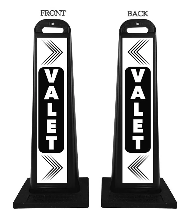 Our Delineator Signs are made of durable, black plastic with a 20 lbs. rubber base. The graphics are printed on to reflective vinyl for better visibility. For custom graphics and logos, please call us at 877-977-8733 for more information.