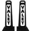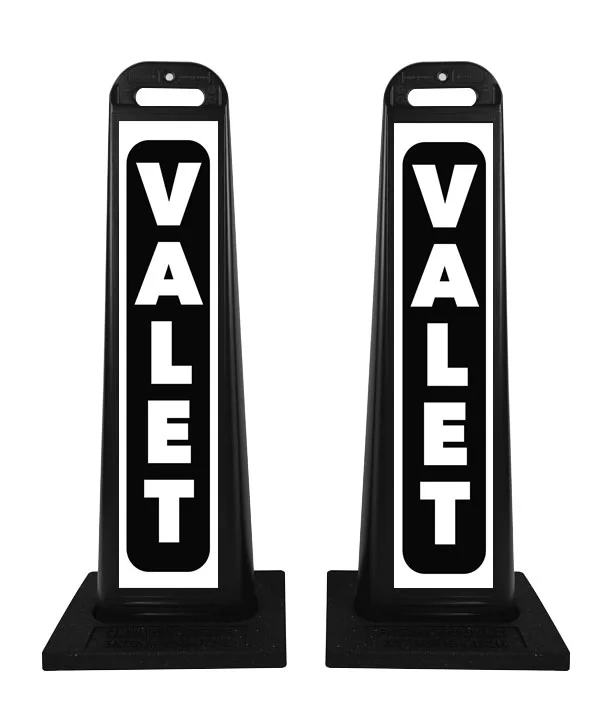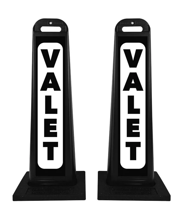 Our Delineator Signs are made of durable, black plastic with a 20 lbs. rubber base. The graphics are printed on to reflective vinyl for better visibility. For custom graphics and logos, please call us at 877-977-8733 for more information.