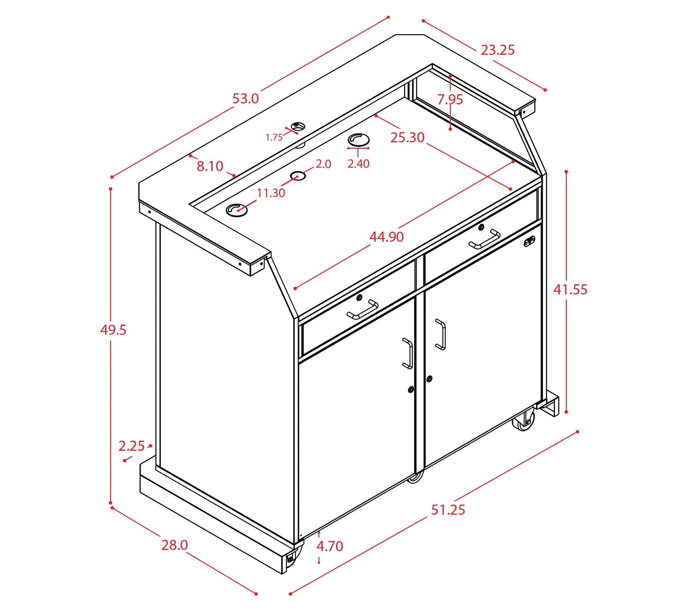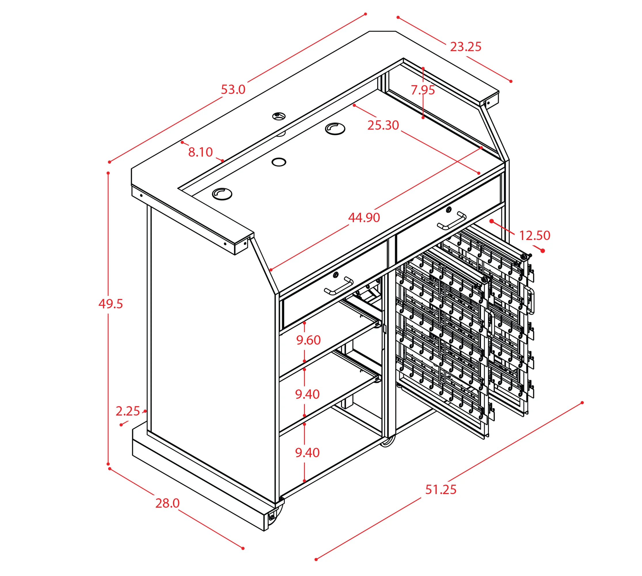 - Double wide (53” total width)