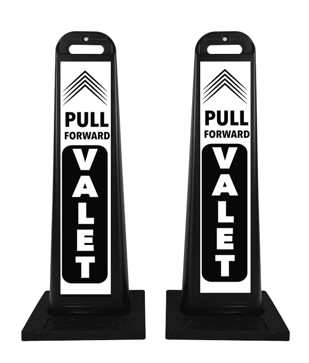 Our Delineator Signs are made of durable, black plastic with a 20 lbs. rubber base. The graphics are printed on to reflective vinyl for better visibility. For custom graphics and logos, please call us at 877-977-8733 for more information.