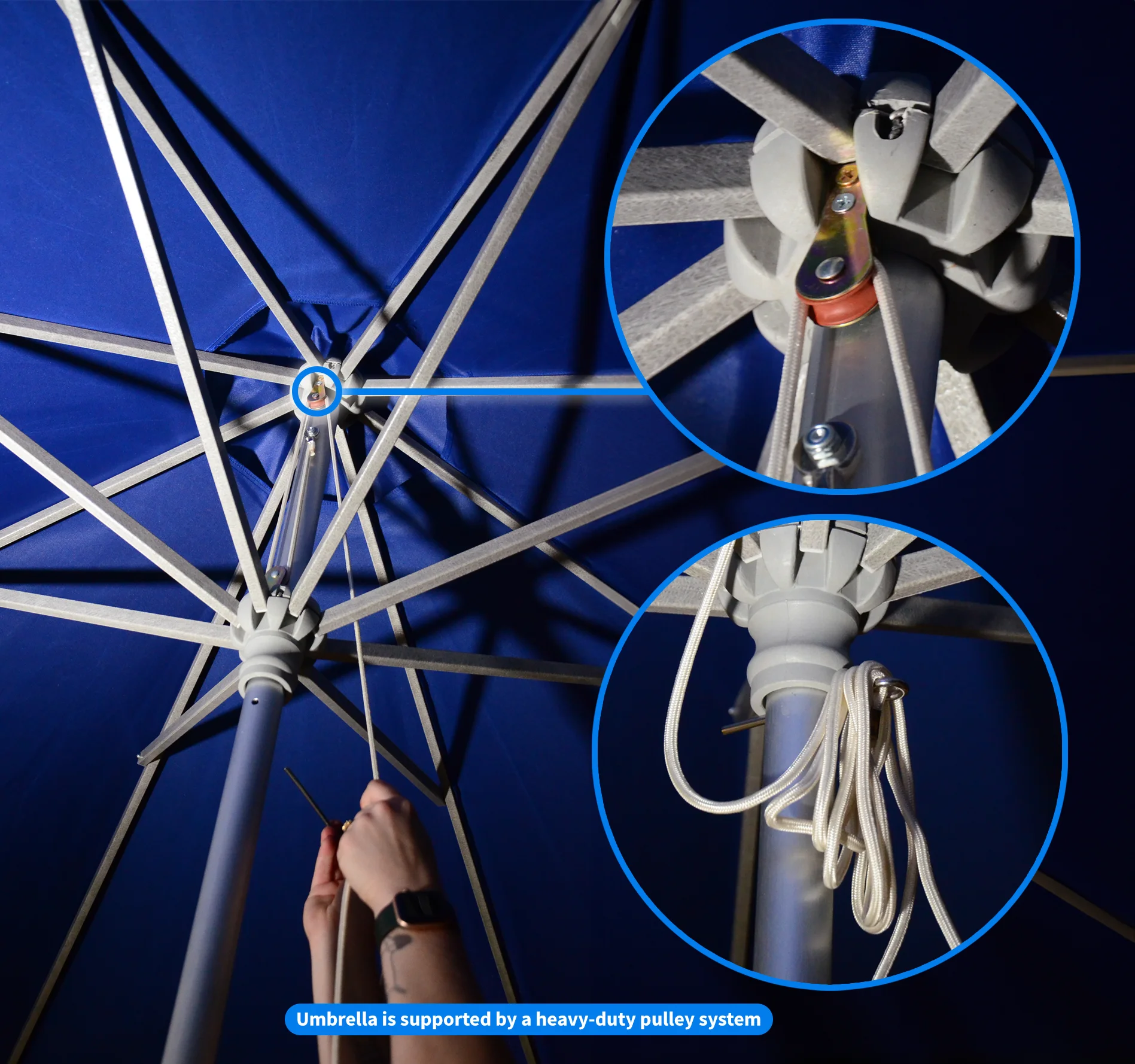 Although durable, umbrellas are not designed to withstand strong winds. Extend the life of your umbrella and podium by taking down the umbrella when the wind picks up.